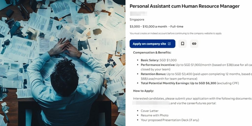 S’pore job listing advertises up to S$10K pay for dual role with senior duties, base salary is S$1K "Even my previous part time jobs earned more than a thousand," a Redditor wrote. 4 minutes ago