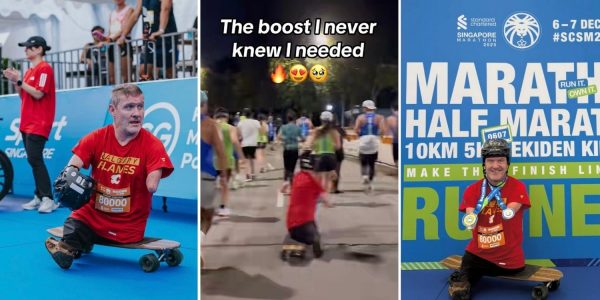 Man with no limbs wins hearts after completing 42.2KM Standard Chartered S’pore Marathon on longboardÂ