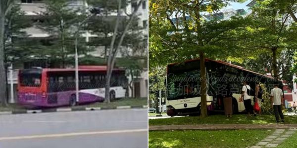 Bus mounts grass verge next to Bedok Reservoir HDB block, 74-year-old driver assisting investigations