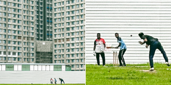 1 year ago Netizen shares heartwarming snap of migrant workers playing cricket outside HDB construction site