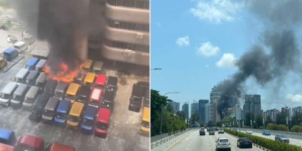 1 year ago Golden Mile Tower blaze sends thick smoke billowing into sky, involved multiple vehicles at car park