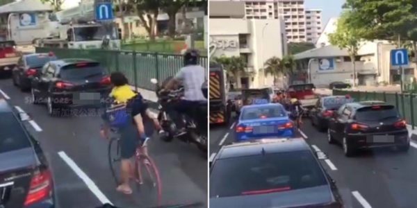 Video of child riding on cyclist’s back among traffic at Guillemard Road goes viral, netizens slam dangerous act