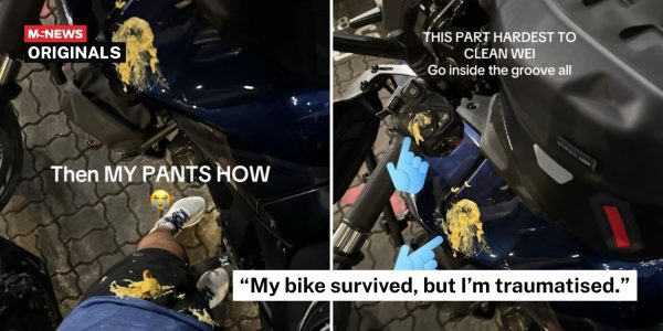 3 weeks ago Rider hit by durian at Jurong car park, fruit gets into crevices of motorcycle & on his shorts
