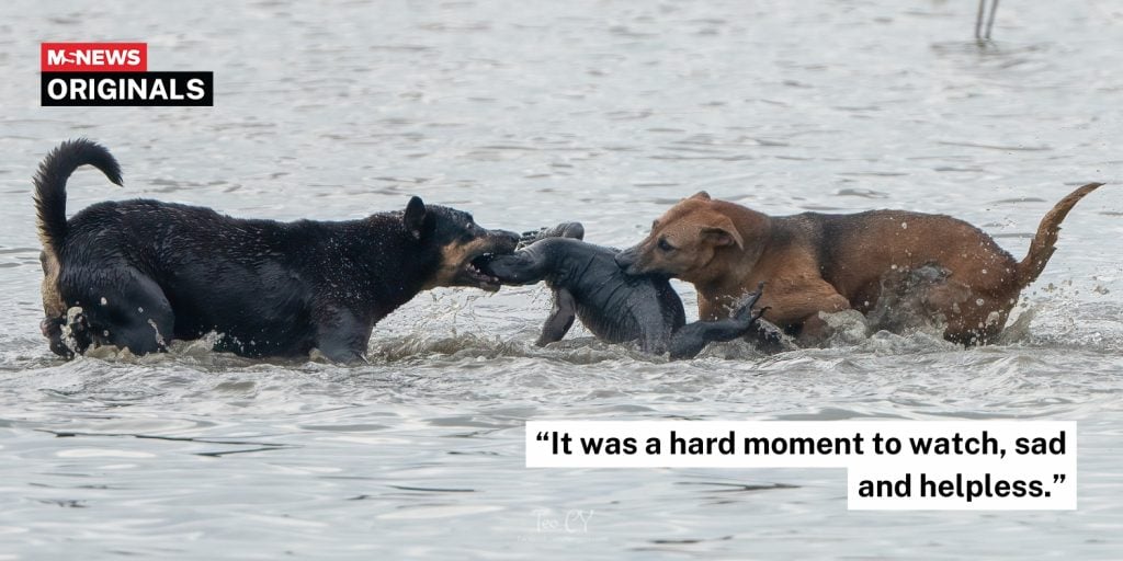 2 stray dogs drag monitor lizard out of water in Sungei Buloh, seemingly kill it in fight The photographer said he had never seen dogs attacking monitor lizards in the water before. 42 seconds ago