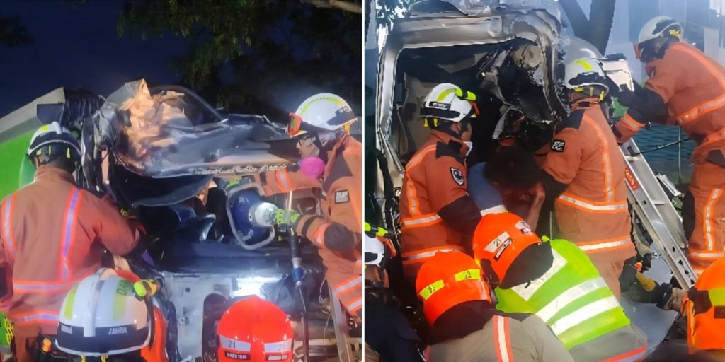 Driver trapped after garbage truck collides with tree in Hougang, gets extricated by SCDF Rescuers had to use hydraulic rescue equipment to free the driver's lower body from the cabin. 15 minutes ago