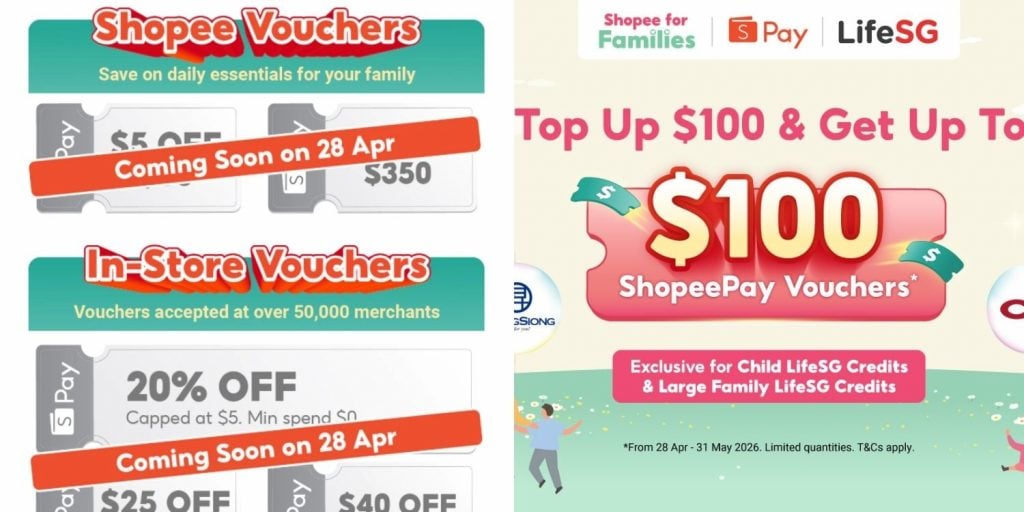 ShopeePay offering up to S$100 vouchers for families ahead of LifeSG payouts until 31 May Families must top up at least S$100 in LifeSG credits to qualify. 6 minutes ago