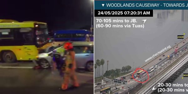 7 months ago Cross-border bus collides with car near Woodlands Checkpoint, lanes closed to clear oil spill