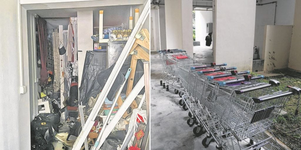Elderly Bedok North hoarder ‘stores’ clutter in void deck, including several supermarket trolleys Neighbours suggested that he started collecting his belongings in the void deck as his flat was too crowded. 8 minutes ago