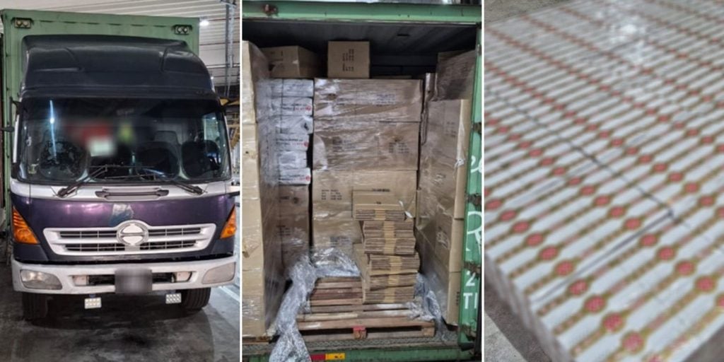 3,500 cartons of duty-unpaid cigarettes found hidden in M’sia-registered trucks at Tuas Checkpoint They were hidden in consignments declared as "tool box and drawer storage", and "furniture". 5 minutes ago