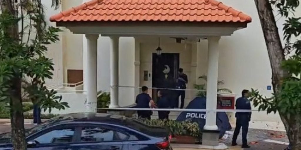95-year-old man dies after fall from height at Tampines condo, no foul play suspected A police blue tent was seen under a driveway shelter of the condo, with a hole in the roof of the shelter. 2 minutes ago