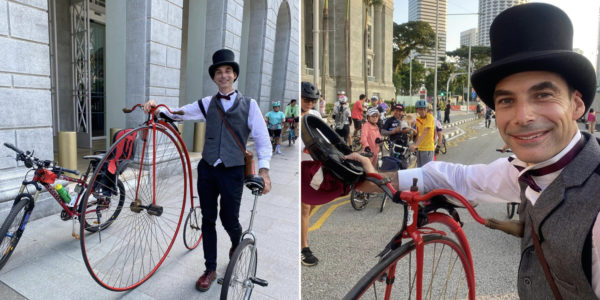 2 years ago Man rides penny farthing during Car-Free Sunday 2024 in S’pore, complete with top hat & suit