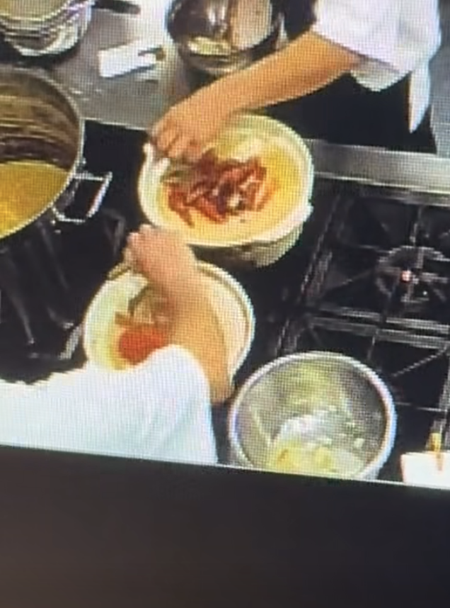 In the clip, a kitchen staff cuts a crab on a white dishcloth — which he later admitted is also used to wipe dishes.
