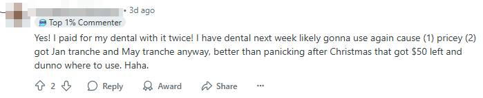 Redditors noted that dental services are not exactly the cheapest, with one user claiming that they have used their vouchers to pay for two dental clinic visits so far.