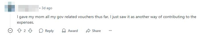 One user, though, gave the vouchers to their parents as a way of “contributing to the expenses”.