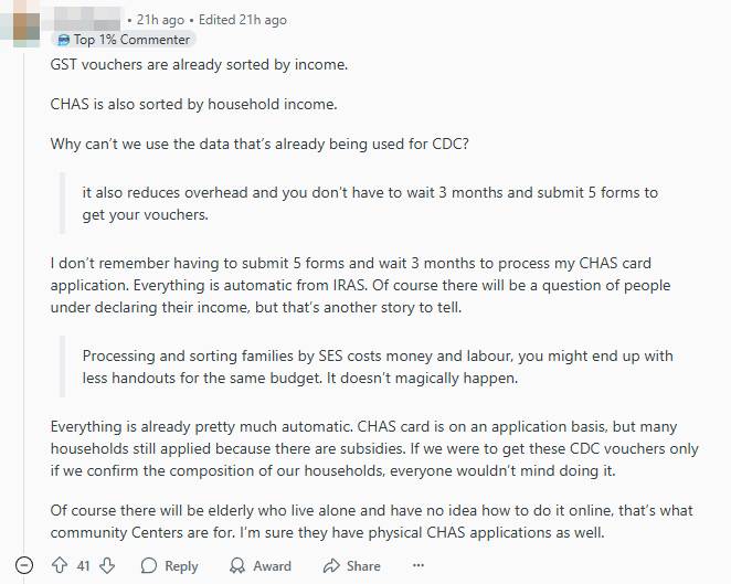 Taking to the r/singapore subreddit on Wednesday (14 May), one Redditor dropped a spicy take titled “CDC vouchers should be per pax, not per household.”