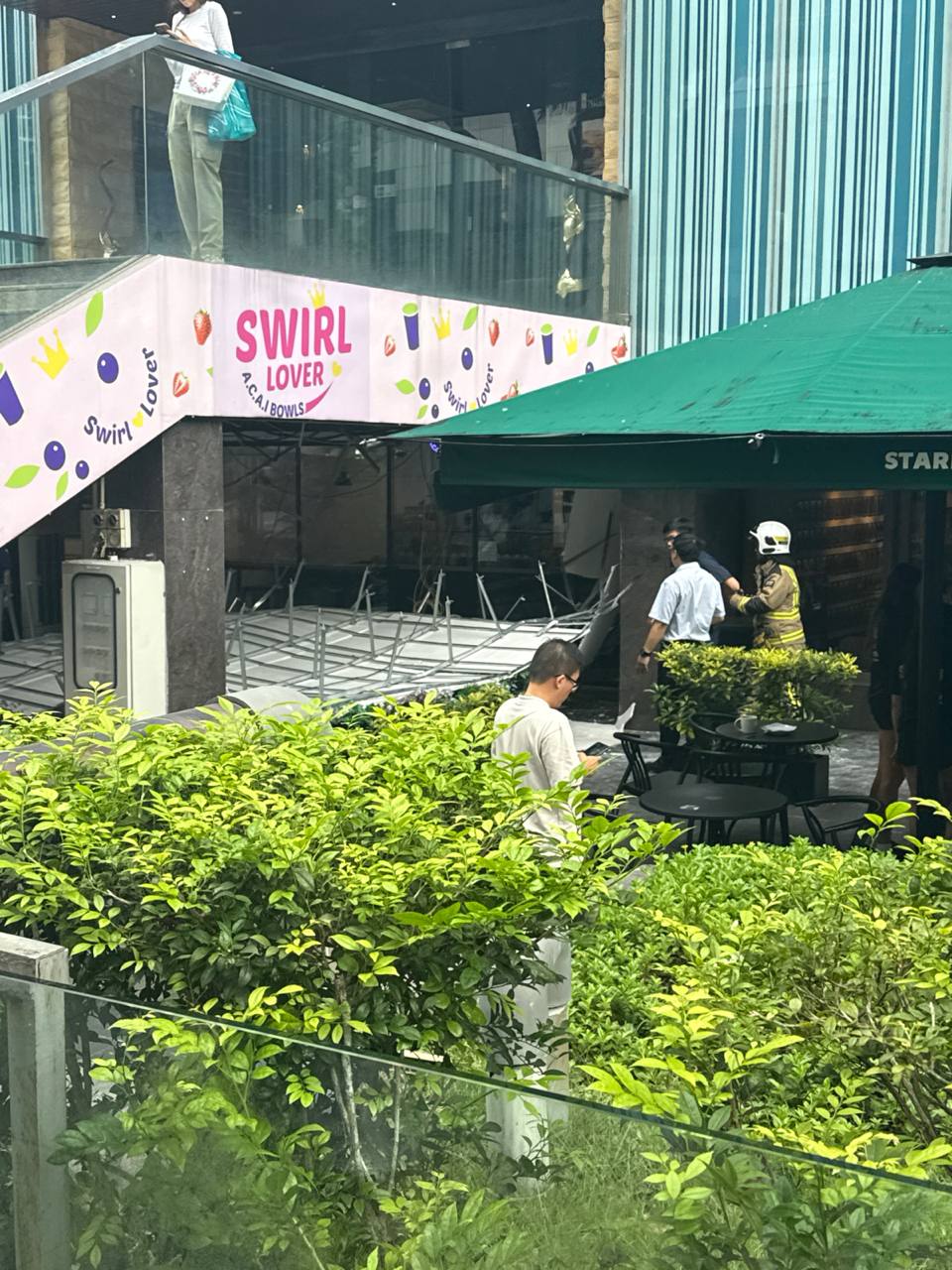 The collapse happened at around 4.05pm, at the outdoor area between Swirl Lover and Starbucks at Liat Towers.