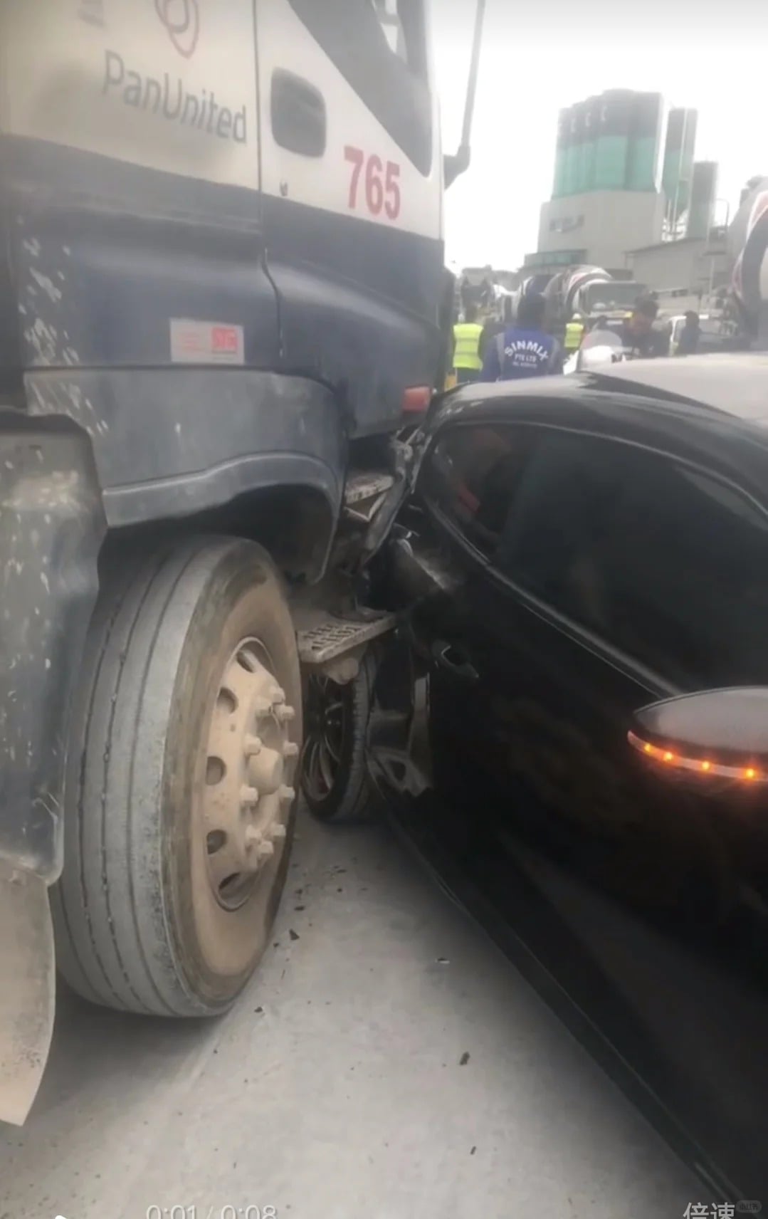 A migrant worker told Shin Min Daily News that he had seen the car crashing into a cement mixer when he came for work at about 8am.