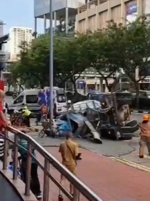 It involved a cement truck believed to have self-skidded along Eu Tong Seng Street towards Hill Street.