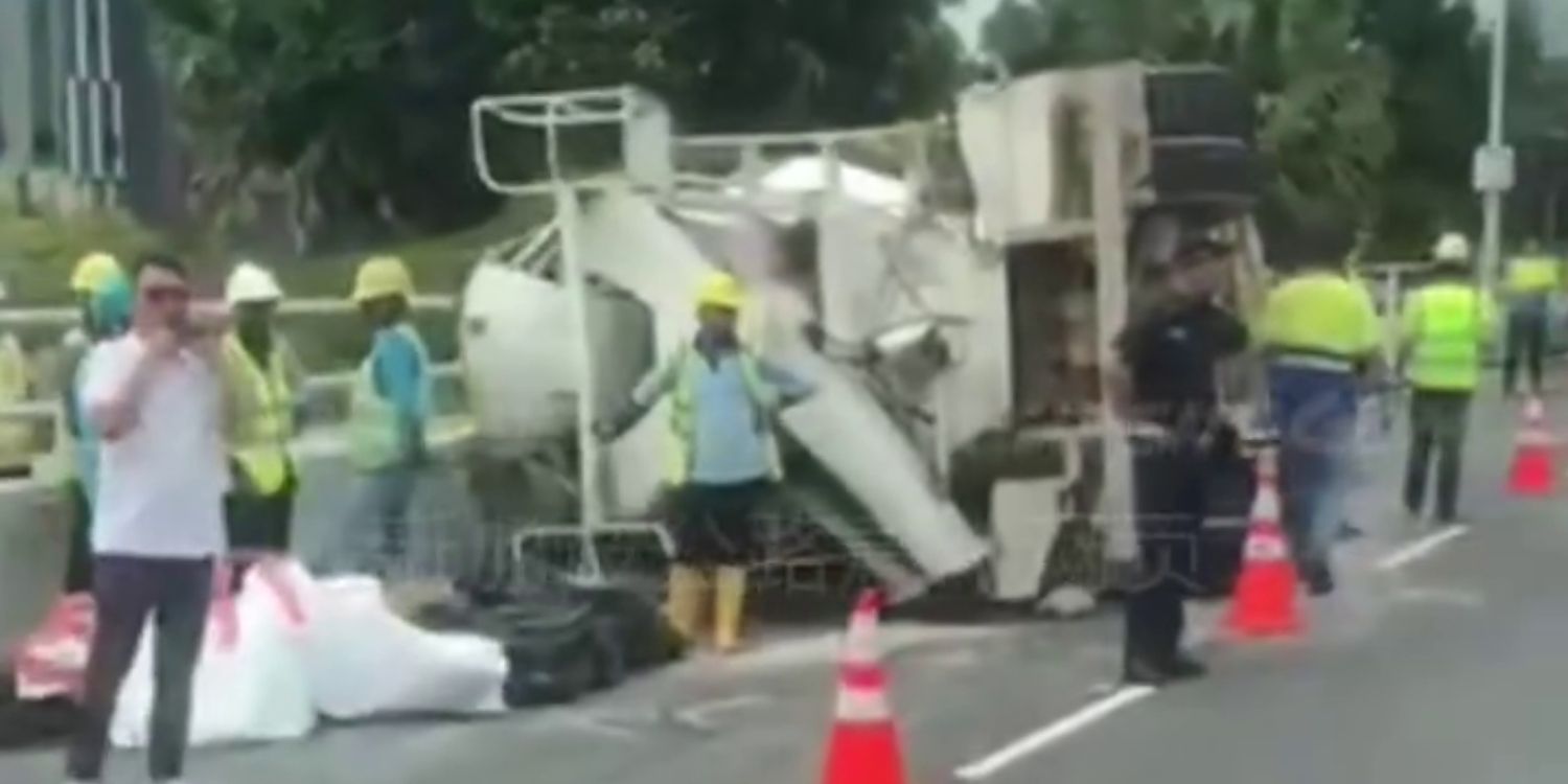 Video footage of the flipped cement truck was uploaded to the Singapore roads accident.com Facebook page on the same day.