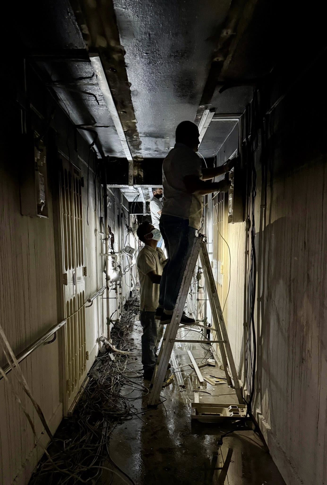 Residents were moved to temporary lodging while electricians carried out urgent repairs in the block.
