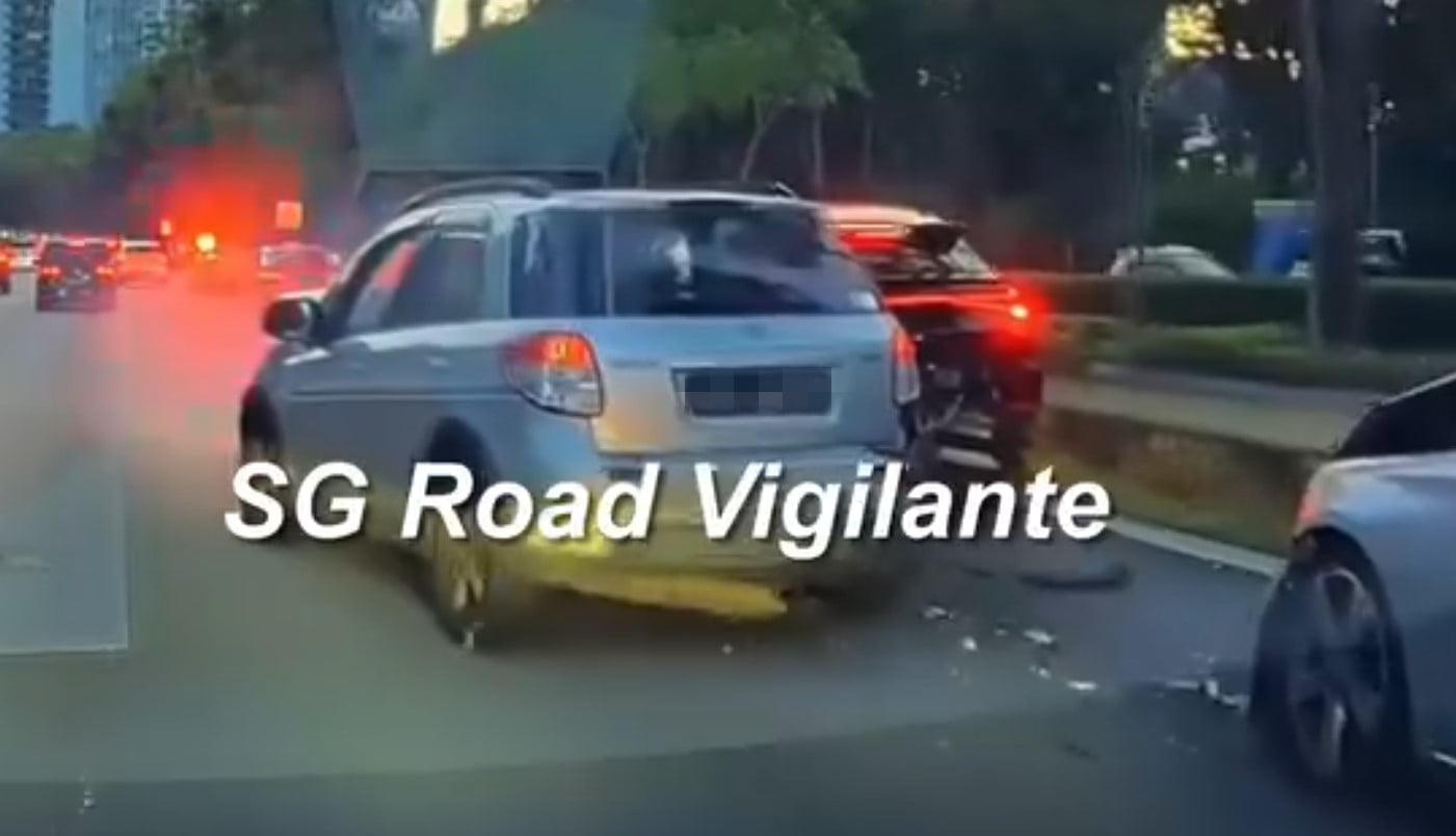 Footage of the crash posted by SG Road Vigilante on Facebook showed five cars bumping into one another after following a police car.