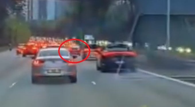 In the clip, which had a time stamp of 7.02pm on 17 April, the Traffic Police (TP) car was seen travelling in the far-right lane with its lights flashing.