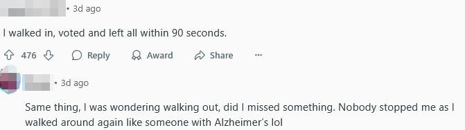 One netizen even claimed they voted and left within 90 seconds.