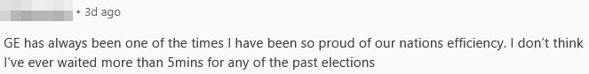 A commenter remarked that the General Elections have always given them pride in Singapore’s efficiency.