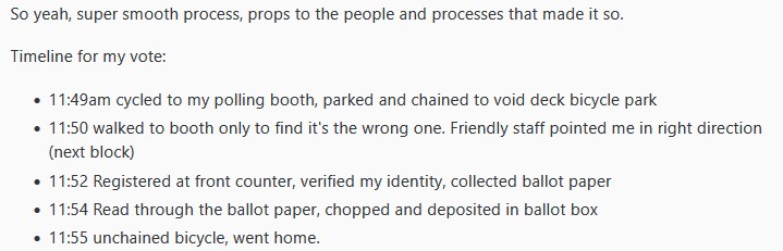 According to the user, they arrived at their polling centre at about 11.49am but discovered it was the wrong one.