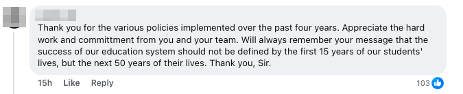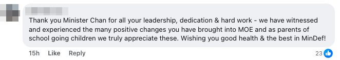 One user noted that they have witnessed and experienced the “positive changes” that Mr Chan had brought into MOE.