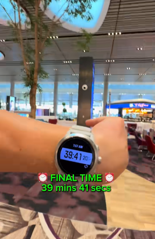 He timed himself from the moment he left his hotel room, all the way to the gate at Changi Airport.