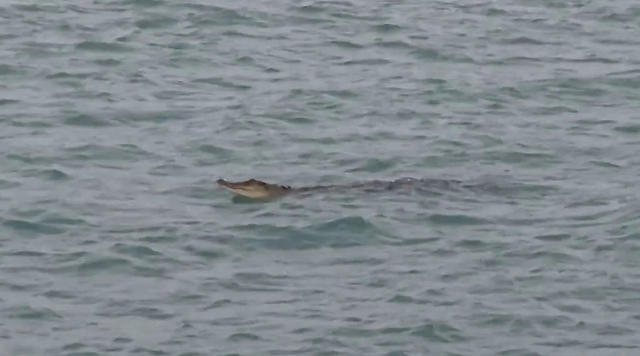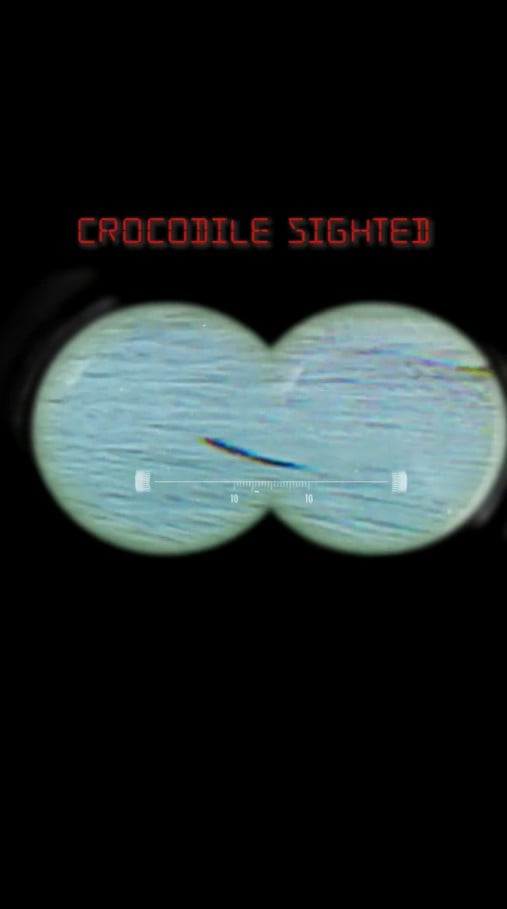 Text in the video initially read “Unknown creature sighted” before changing to “Crocodile sighted”.