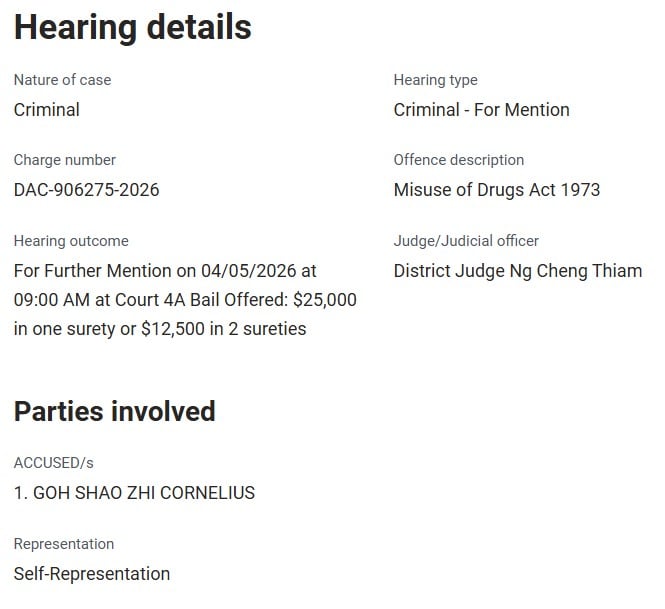 According to hearing details on the SG Courts website, Goh was self-represented during Monday’s hearing.