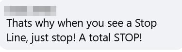 Another commenter pointed to the incident as a good example of why drivers should always stop at stop lines.