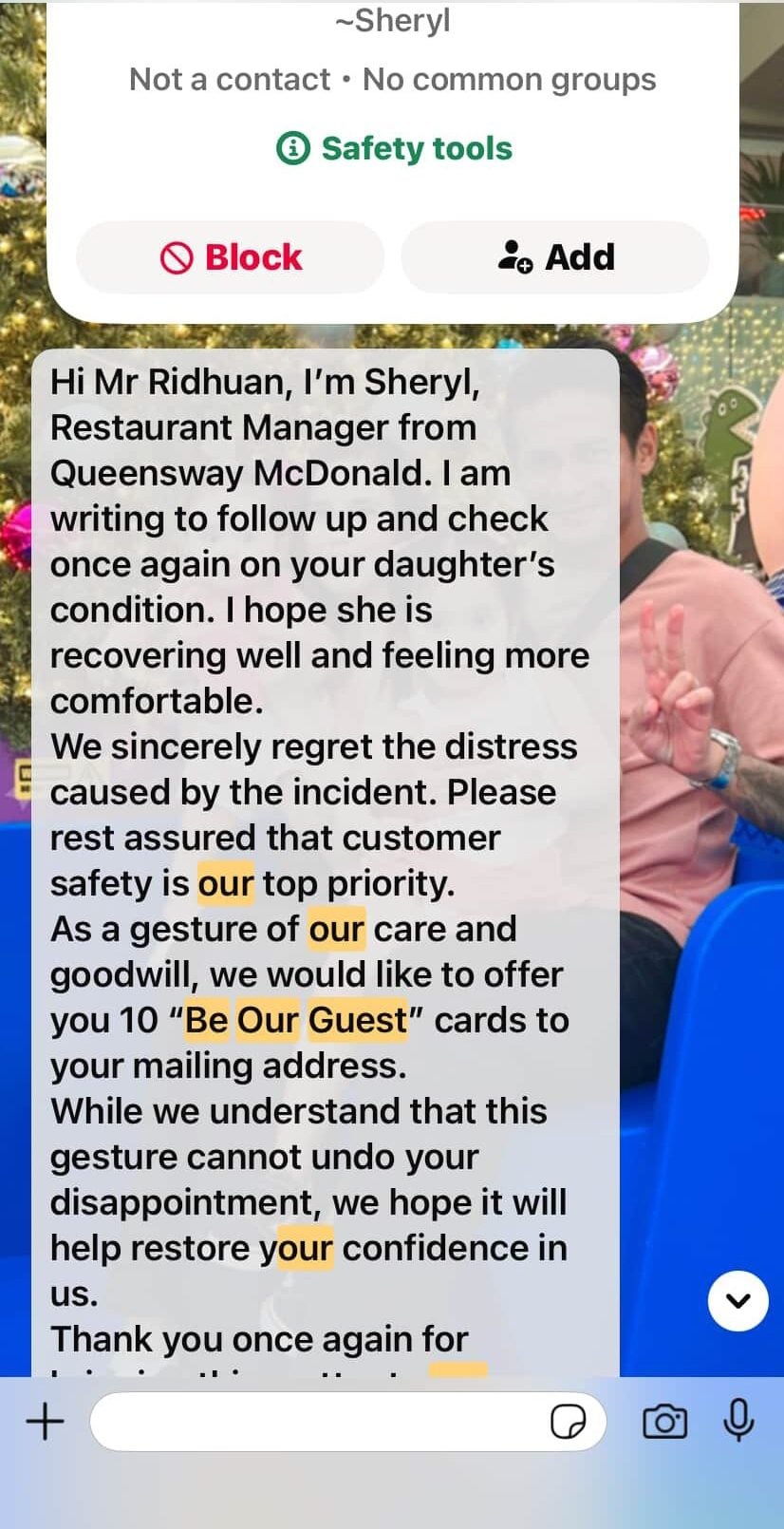 In response to media queries by MS News, a McDonald’s spokesperson described the incident as “a misunderstanding at the point of service”.