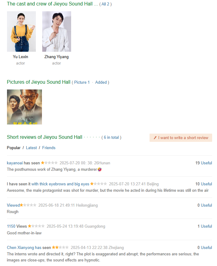 Despite his conviction, some of Zhang’s posthumous works continued to be released, including the film The Sound of Music (解忧音声馆) in March 2025.