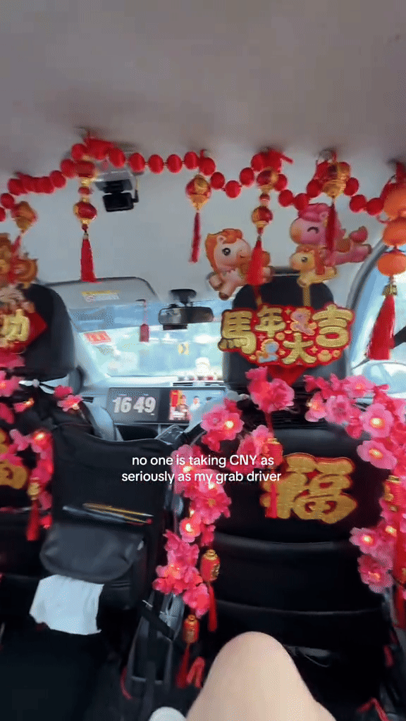 “No one is taking CNY as seriously as my Grab driver,” the onscreen text read, emphasising just how much effort the driver had put into creating a festive environment compared to the usual level of seasonal enthusiasm.