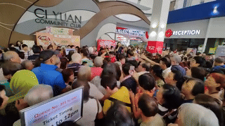 Videos of the scene, posted on Facebook on Thursday (17 April), showed hordes of mostly older residents swarming the lobby of the CC.