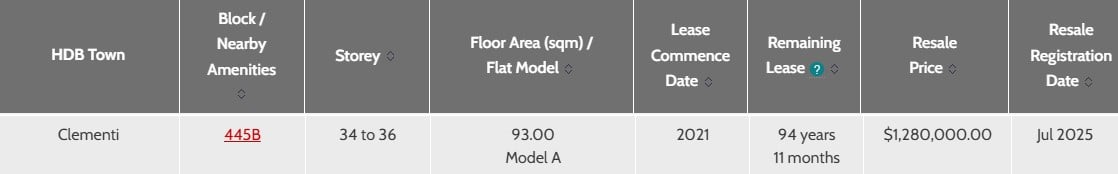 The latest entry in the ranks of record-breaking flats is located in Block 445B Clementi Avenue 3, according to HDB resale flat records.