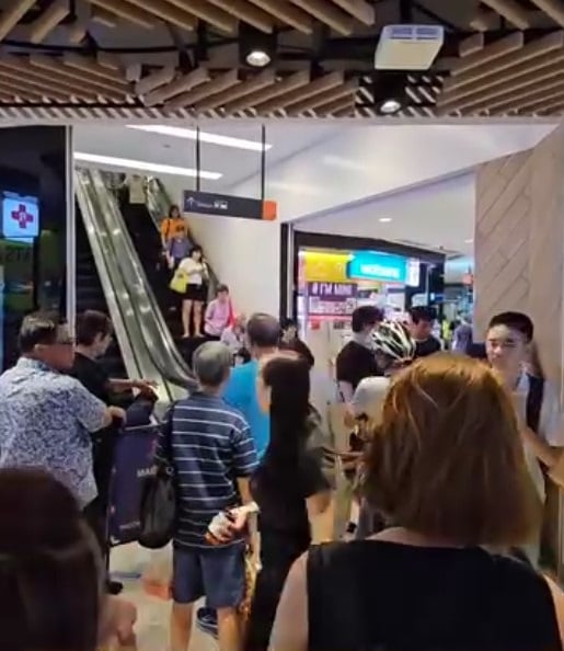 Crowd forms at Clementi Mall basement after escalator is turned off