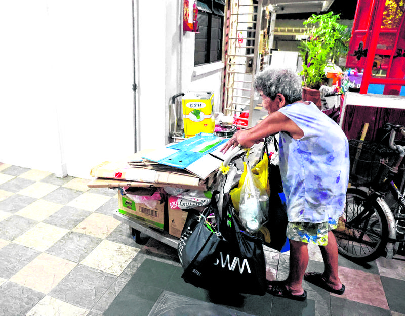 When Shin Min reporters visited her at 10pm recently, Mdm Ou had just stumbled home with a cart full of cardboard, her eyes tinged with fatigue.