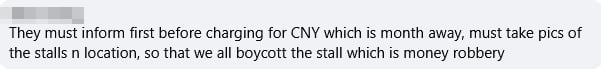 Commenters expressed outrage at the surcharge due to CNY being more than a month away, even saying that the stall should be boycotted.