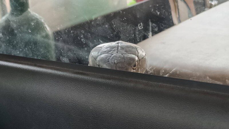 From the back of the vehicle, the cobra stared menacingly at its captors.