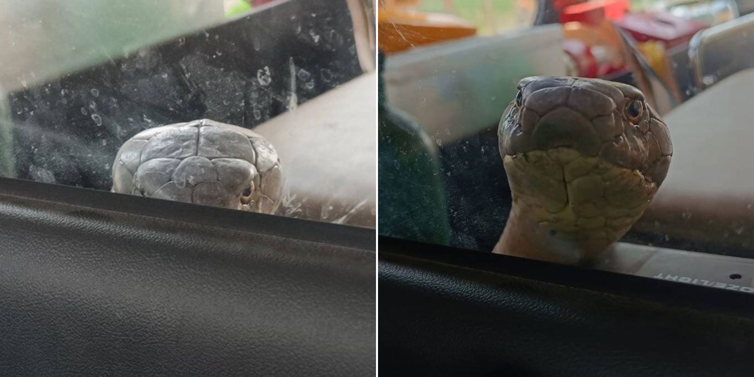 The pair discovered the cobra’s escape while they were driving and were initially worried that it would somehow find an opening to crawl into the front section.