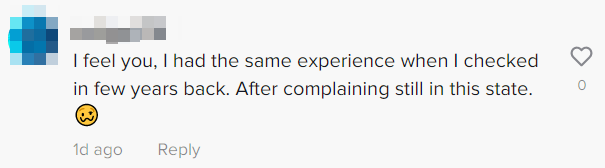 Furthermore, another TikTok user noted that they faced the same issue years ago at the same hotel. They were shocked that nothing seems to have been put in place to prevent such cases from happening again.