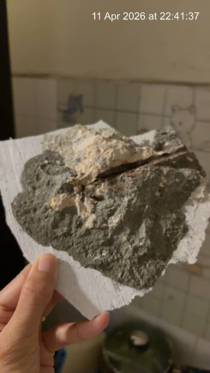 An Yishun resident was left shaken after chunks of concrete fell from her flat late at night, narrowly avoiding injury.