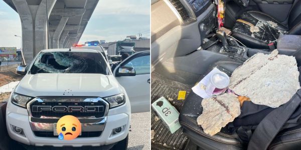 Concrete block falls & crashes into truck on Thailand road known for deadly accidents
