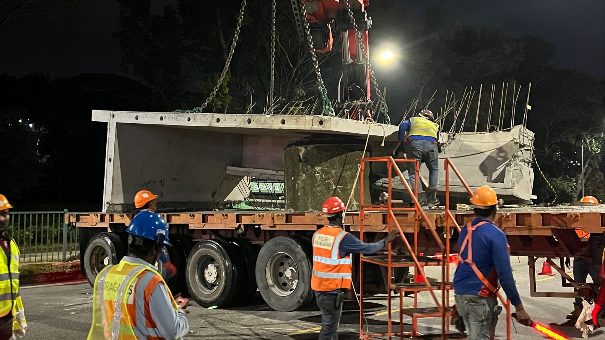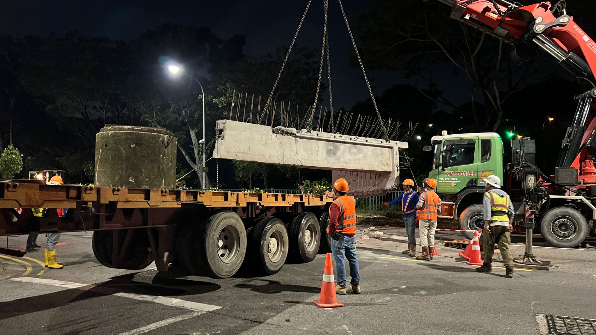 Crane crew called in as concrete structure falls off trailer onto Upper Bukit Timah Road