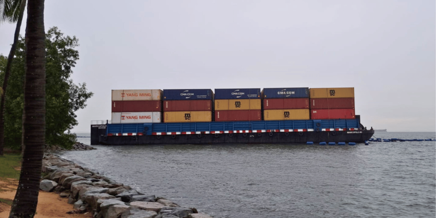 A container barge was spotted grounded off Tanjong Beach in Sentosa on Friday morning (6 June).