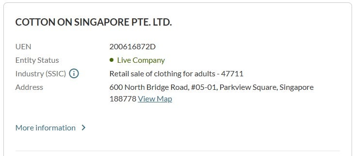 However, another company known as Cotton On Singapore, which sells clothing, was still “live”.